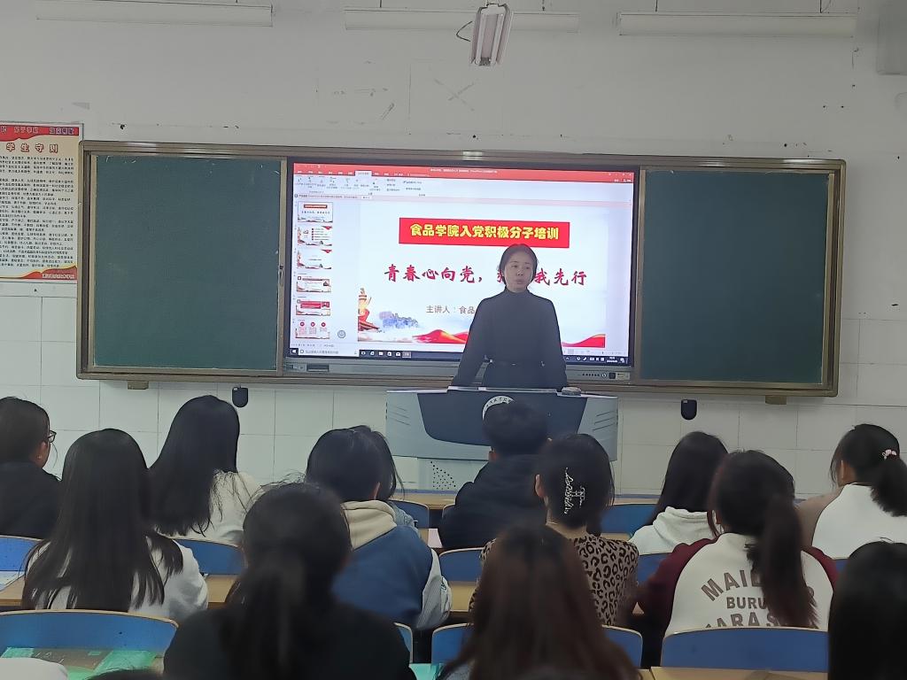 为了使入党积极分子全面加深对党的认识和理解,明确新时期党员标准和肩负的历史使命,了解入党程序,坚定理想信念,明确和端正入党动机。4月26日下午,食品学院党总支副书记王新娜为入党积极分子上了一堂以“青春心向党,强国我先行”为主题的培训课。