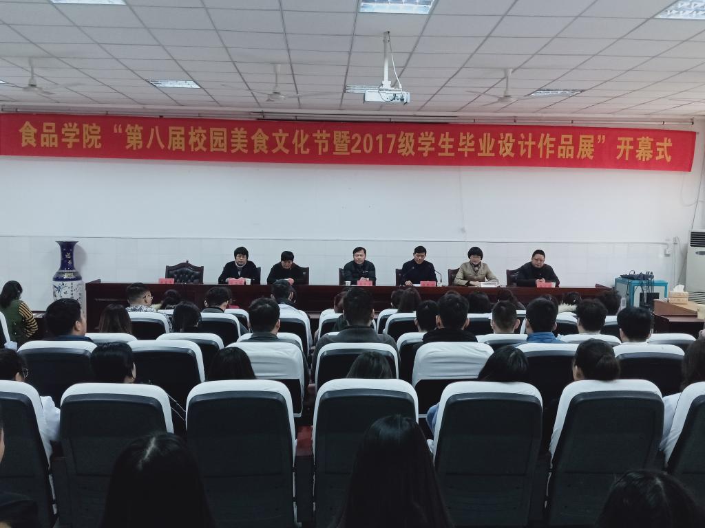 11月29日,我校食品学院第八届美食文化节暨2017级学生毕业生作品展在三号教学楼成功举行。学院副校长王变奇、科研处处长李杰及食品学院体师生参加开幕大会。会议由食品学院教学主任崔惠玲主持。