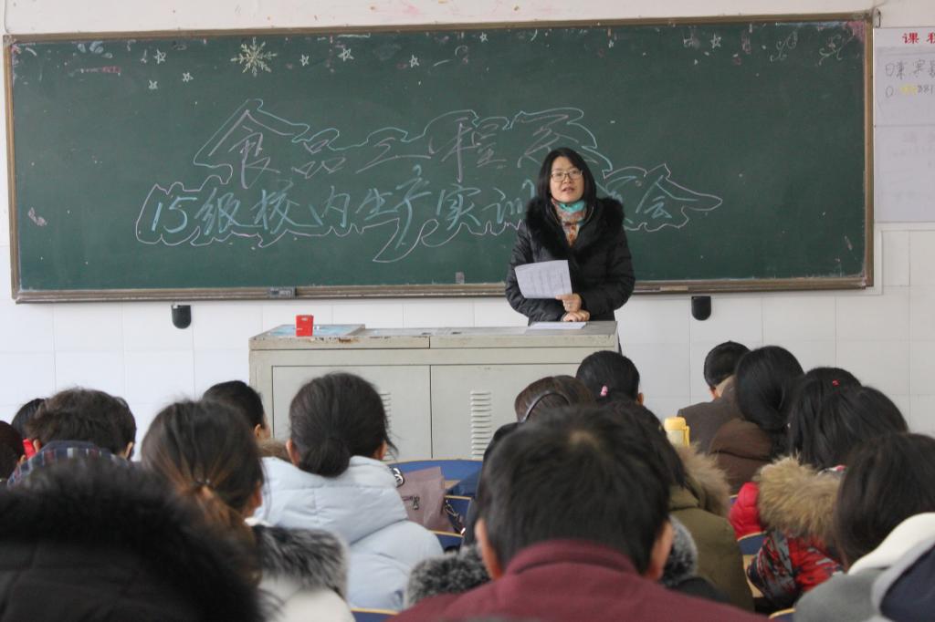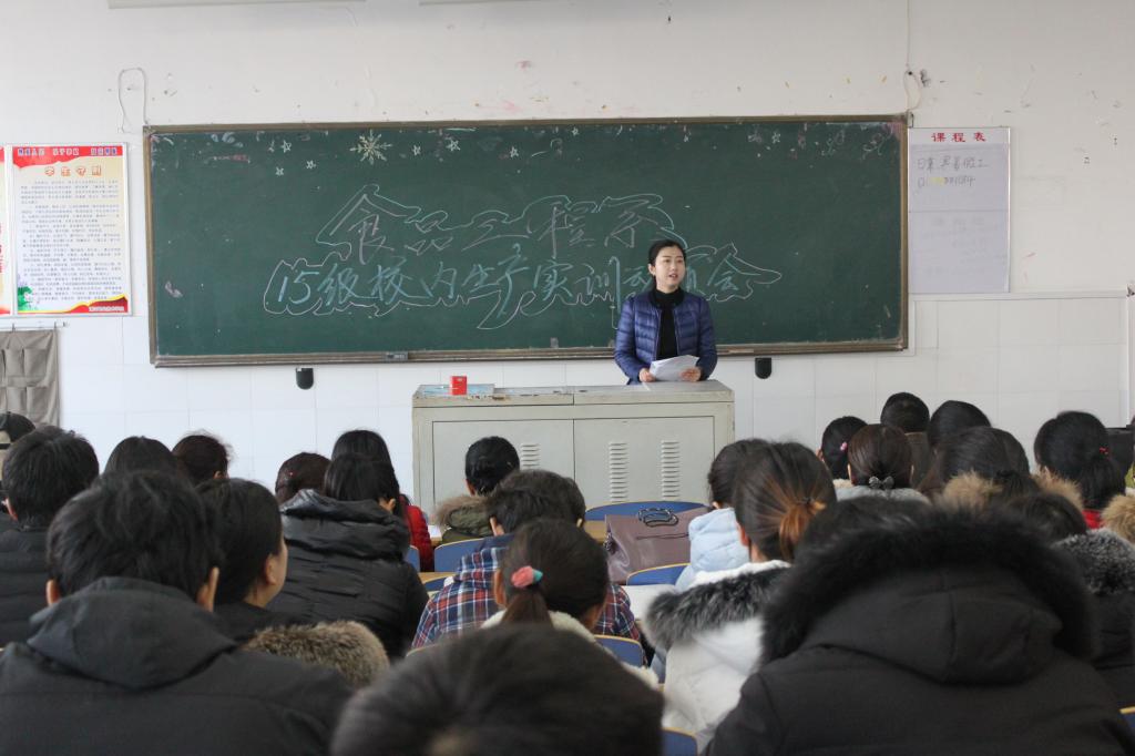 12月5日,食品工程系在3305教室组织召开了2017年校内生产实训动员大会,系领导班子、全体指导教师和15级在校生参加了本次会议。本次会议包括六个议程。教学主任崔惠玲主持会议。