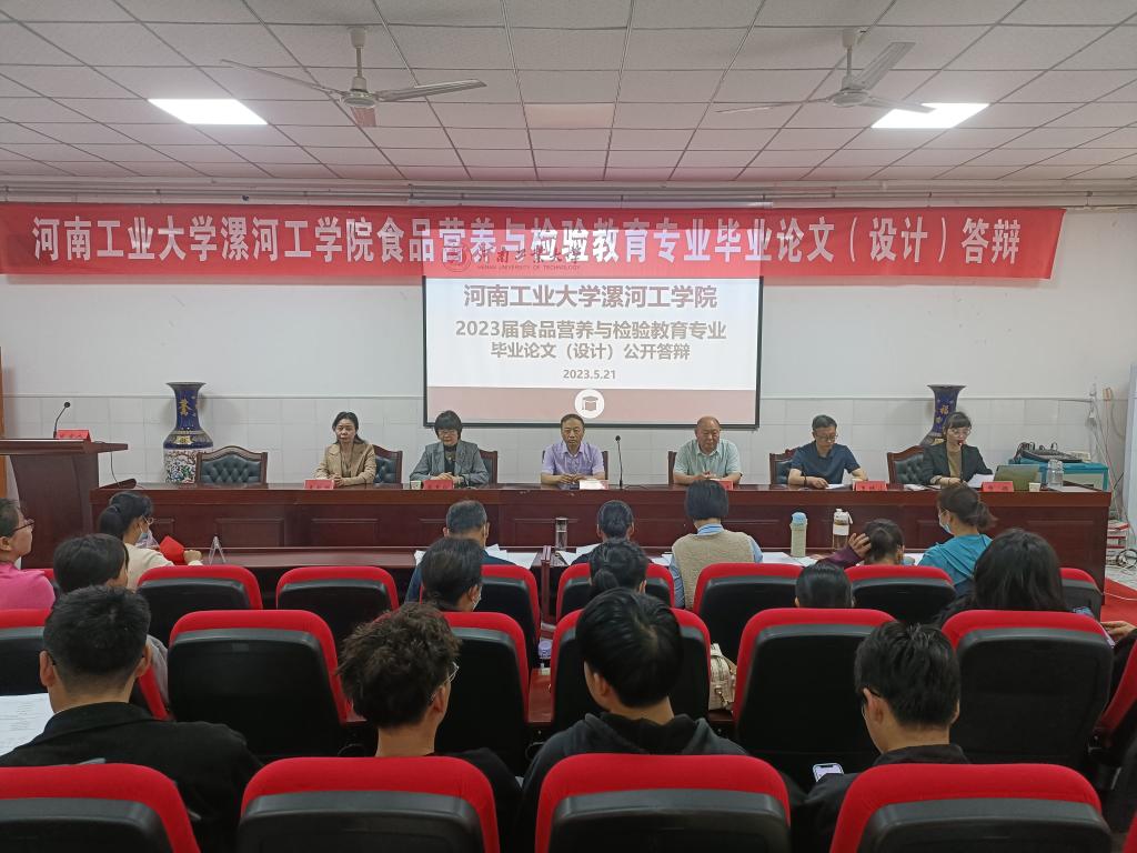 2023年5月21日,河南工业大学漯河工学院2023届食品营养与检验教育专业毕业论文(设计)答辩成功举行。本次活动由本科教研室主任贾娟主持,食品学院党总支书记贾新政、行政负责人崔惠玲、副书记王新娜、教学主任王林山、综合办主任陈水生出席了此次活动,毕业论文(设计)指导老师、食品营养与检验教育专业2019级全体和2020级部分学生参加了此次答辩。