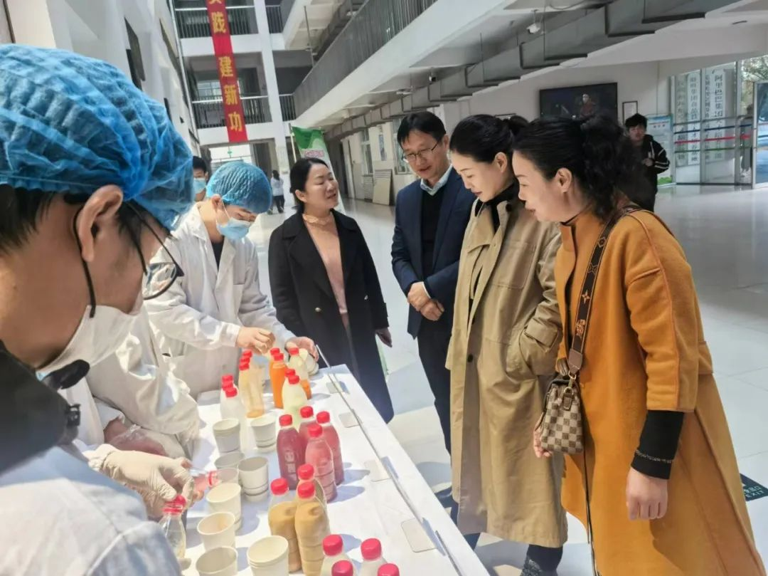 为培养学生食品生产操作及控制能力、食品开发与工艺设计能力,全方位掌握食品行业所需相关知识与技能,11月15日,食品工程系举办食品营养与检验教育专业学生作品展示。党委副书记薛存心,党委委员、纪委书记刘杏茹,党委委员、组宣部部长缪俊岭,本科部主任娄琳,本科部办公室主任王方莅临现场观摩指导,食品工程系党总支负责人王新娜,食品工程系学生管理负责人卢向飞和相关专业课老师陪同观摩。