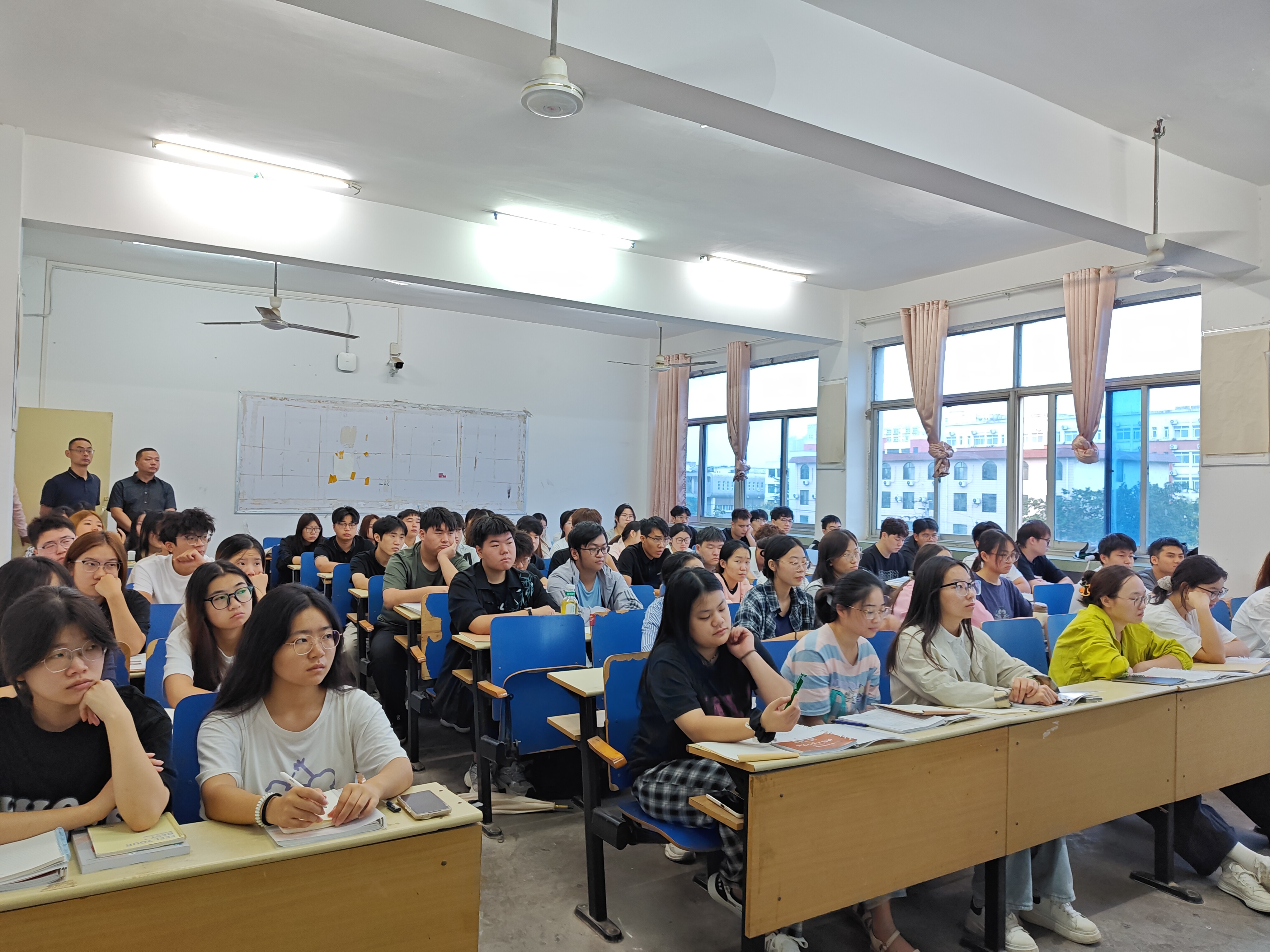 从检查整体情况看,新学期教学秩序井然,各项工作开局良好。在课堂教学方面,任课教师均按时到岗,教学准备充分,授课富有热情;学生出勤率高,听课专注,师生互动积极,课堂学习氛围浓厚。在教学环境方面,大部分教室窗明几净,卫生状况良好。在实训条件方面,各实训室设备总体运行正常,能为实践教学提供有效支撑。