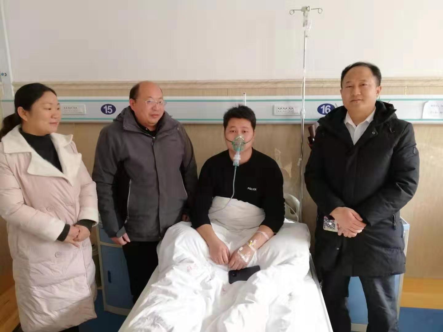 危险解除后,张佳和钱俊磊由于吸入烟尘过多昏倒,被送入驻马店市第一人民医院急诊重症监护室抢救。经诊断,二人均为吸入一氧化碳过量和呼吸道灼伤。经过一天一夜全力抢救,张佳、钱俊磊脱离危险,状况基本稳定,正在进一步治疗观察中。驻马店市公安局、驿城区城市管理局主要领导、获救老人家属和各界群众先后来到医院看望并送去祝福。获悉张佳英勇救人的感人事迹后,张佳大学时的老师翟迎朝、寇海峰和辅导员卢向飞专程到医院看望慰问。