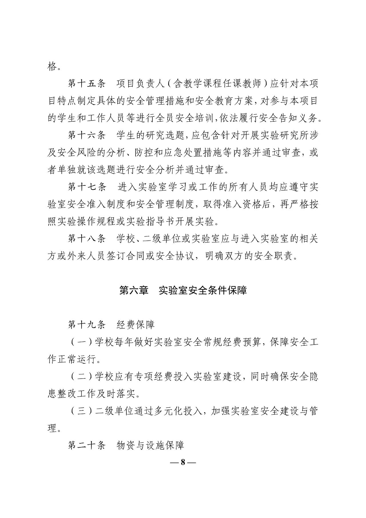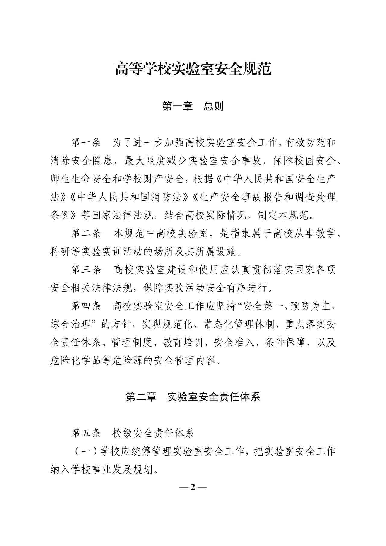 教育部办公厅关于印发《高等学校实验室安全规范》的通知