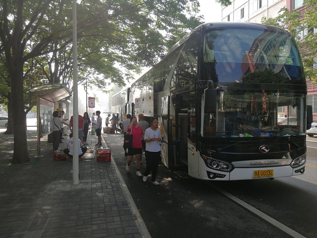随后,在领导的祝福声中带队老师和95名学生登上班车顺利出发。