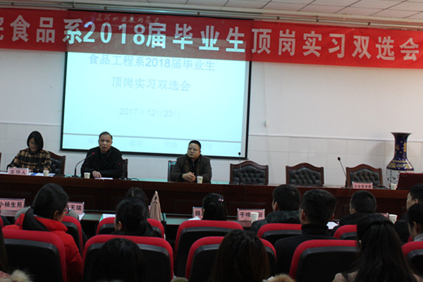 近日,太阳集团tyc4633食品工程系在3101会议室举办了2018届毕业生顶岗实习双选会。有郑州千味央厨食品股份有限公司、郑州市仟吉食品有限公司等28家公司进行招聘宣讲。食品工程系领导班子、教研室主任、辅导员及15级、16级全体学生参加了本次双选会。系主任李文典强调了顶岗实习的目的和意义,明确了顶岗实习的任务和要求。