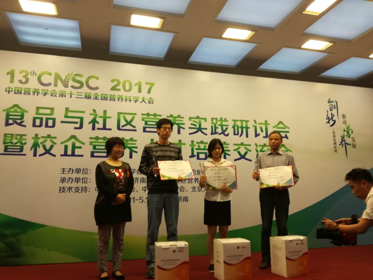 最后大会进行了颁奖,我院获得“社区营养突出贡献奖”。我院到知心天瑞就业学生有80人,现在稳定就业的有70多人,留存率达到90%,有多名学生在企业进步很快,已走到总监、店长等岗位。我院学生在知心天瑞的良好表现得到了知心天瑞的高度肯定和赞扬。
