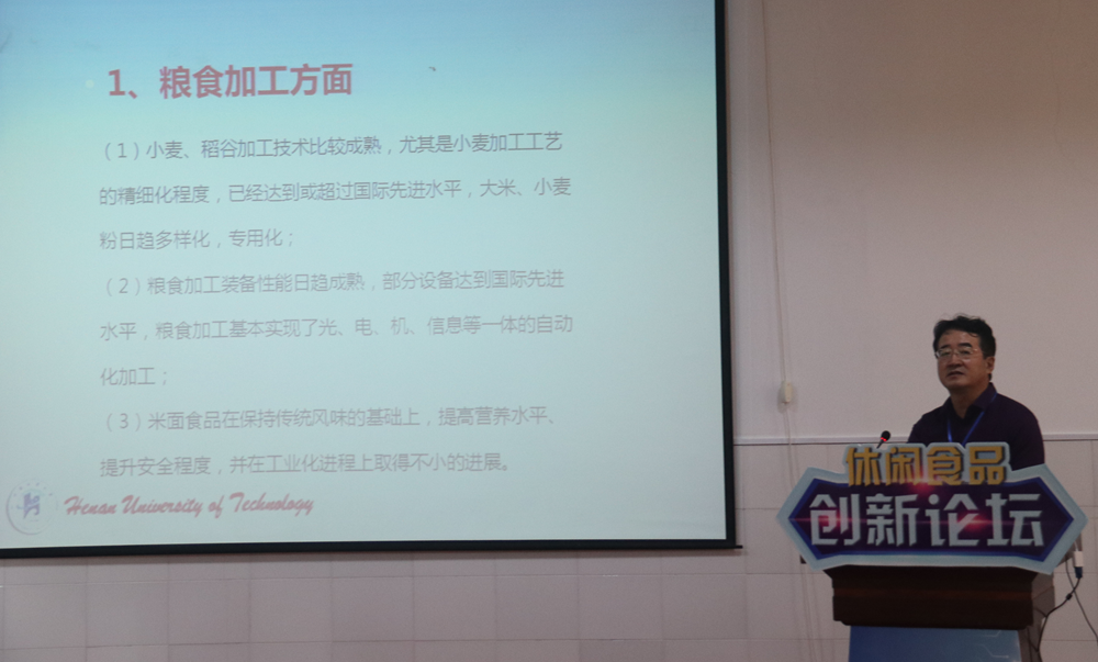 南京农业大学博士生导师、南京黄教授食品科技有限公司总经理、创始人黄明教授,河南科技学院、河南省农产品加工与贮藏工程学会、食品科技学会理事高晗教授,郑州轻工业学院食品与生物工程学院副院长刘延奇教授,河南工业大学粮油食品学院食品科学与工程系主任张国治教授,河南工业大学粮油食品学院院长、博士生导师王晓曦教授在论坛上分别做了主题报告。