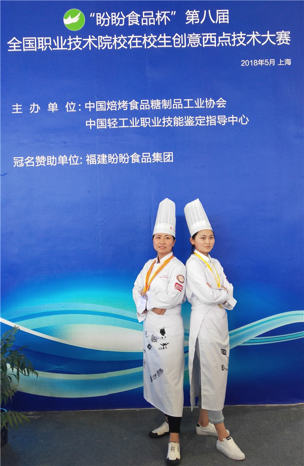 2018年5月11-12日,第八届“盼盼食品杯”全国职业院校在校生西点创意大赛总决赛于上海新国际博览中心落下帷幕,太阳集团tyc4633食品工程系2015级仟吉学徒制班任晓宁的裱花西点作品《我的地盘我做主》获得铜奖,2017级食品营养与检测冯会琳的裱花西点作品《花开盛世》获得优秀奖。