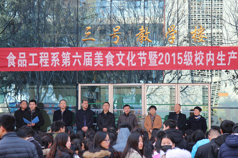 12月22日,我院食品工程系第六届美食文化节暨2015级校内生产实训产品展在三号教学楼成功举行。学院副院长朱晓红、王变奇、代骅,工会主席吕爱华,相关部门负责人及食品工程系全体师生参加开幕大会。会议由食品工程系系主任李文典主持。