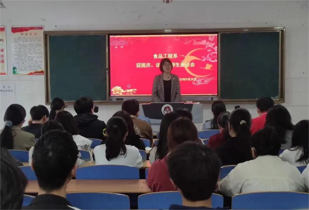 金秋送爽,丹桂飘香,9月29日上午,食品工程系举办“迎国庆、话中秋”师生座谈会,为假期留校的学生送去月饼,带上祝福。座谈会由食品工程系学生管理负责人卢向飞主持,全体领导班子成员及假期留校学生参加了座谈会。