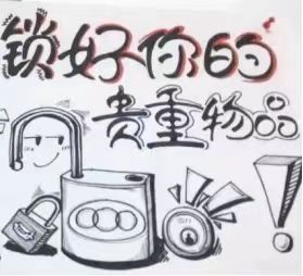 妥善保管财物。现金、存折、银行卡等贵重物品要锁好,不要将重要信息透露给他人。尽量做到“物品入柜”,不随意将贵重物品置于桌上等显眼处,尤其在放假离校期间保管好贵重物品。