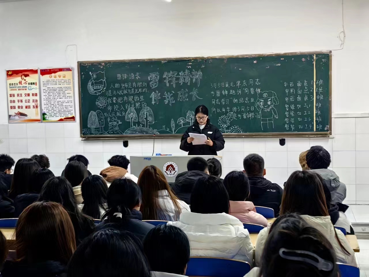 本次团课主要分为“学习雷锋精神”主题黑板报展览和“学习雷锋精神”主题演讲两个部分。活动中,各班团支部均制作了内容丰富的主题黑板报,通过图文并茂的形式向同学们展示了雷锋同志的光荣事迹和不朽精神。同时,在演讲活动中,各团支部的学生为大家讲述了雷锋同志的先进事迹,深入剖析了雷锋精神的核心内涵,号召同学们向雷锋同志学习,在学习、生活和实践中继承和发扬伟大的雷锋精神。