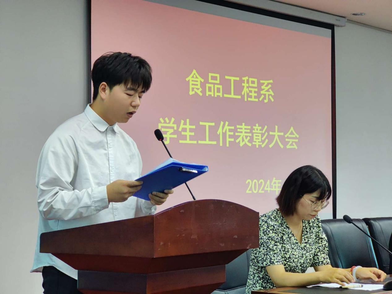 食品工程系行政负责人崔惠玲宣读了表彰决定。她强调,“这些荣誉的获得不仅是对学生们个人努力的肯定,更是对食品工程系全体师生团结协作、共同奋斗的认可,希望受表彰的同学能再接再厉,勤奋学习,锤炼技能,实现自我价值的提升,为系部的发展作出更大的贡献”。