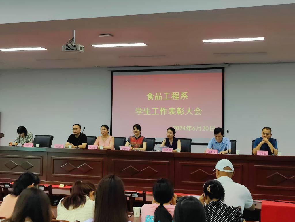 “食代先锋,在我食工;光荣绽放,启航新程”。为表彰过去一学年中在各项比赛、活动等方面取得优异成绩的学生,树立先进典型,发挥榜样力量,激励广大学子奋发向上,接续奋斗,食品工程系于6月20日在学校行政楼七楼隆重召开2023-2024学年学生工作表彰大会。系部领导班子成员,全体教师及2023级全体学生参加了大会。
