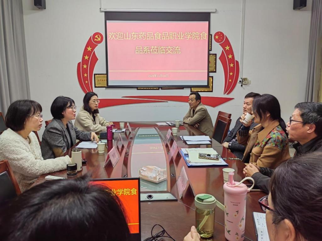 11月14日上午,山东药品食品职业学院食品系副主任杨萌、教研室主任孙丽萍和骨干教师李昌一行3人到食品工程系进行调研交流,食品工程系行政负责人崔惠玲出席并主持会议,副主任闫建伟和系部各教研室主任参加了研讨。