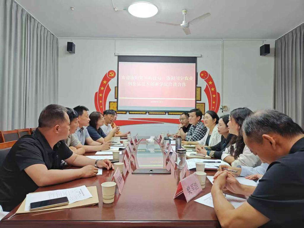 5月10日,洛阳栾川县科技局、洛阳川宇农业公司一行7人到2003网站太阳集团就产教融合、校企合作、人才共育、科研共创等问题开展洽谈合作。栾川县科技局党组书记、局长黄正煊,副局长王亚楠、李应珂,洛阳川宇农业有限公司董事长李双松,副总经理赵宝、吴东阁等到访学院。食品工程系行政负责人崔惠玲,党总支负责人王新娜,院系领导班子成员、协同创新主任及专业教师参加座谈。