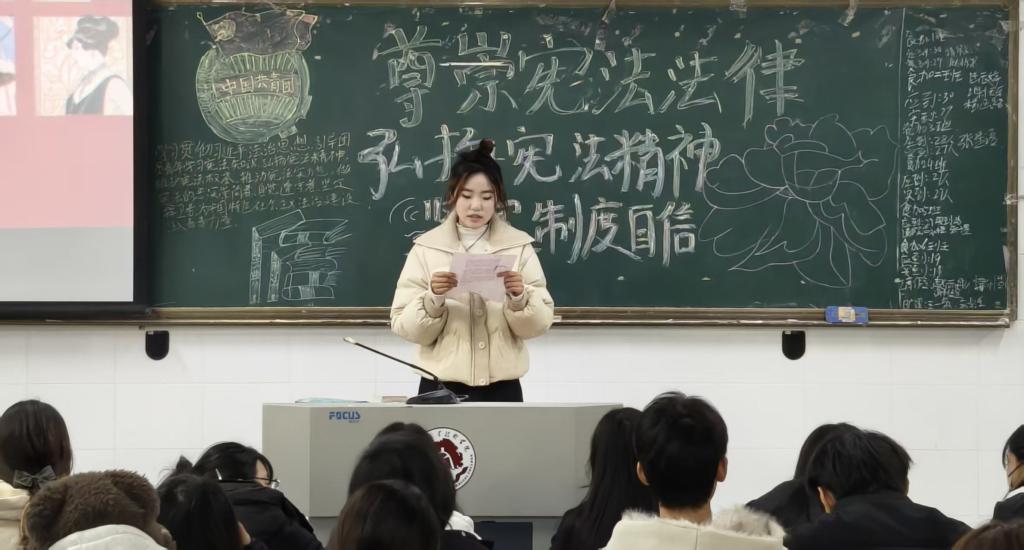 本次团课旨在提升我院学生的法治素养,强化责任担当,各个专业学生积极参与,现场氛围庄重而热烈.本次活动以演讲方式进行,从宪法的历史,核心要义以及在国家治理中的根本保障作用出发,结合生动案例阐述了宪法法律是党和人民意志的集中体现.讲解深入浅出,既有高度又有深度,体现我院学生对此次活动的高度重视.