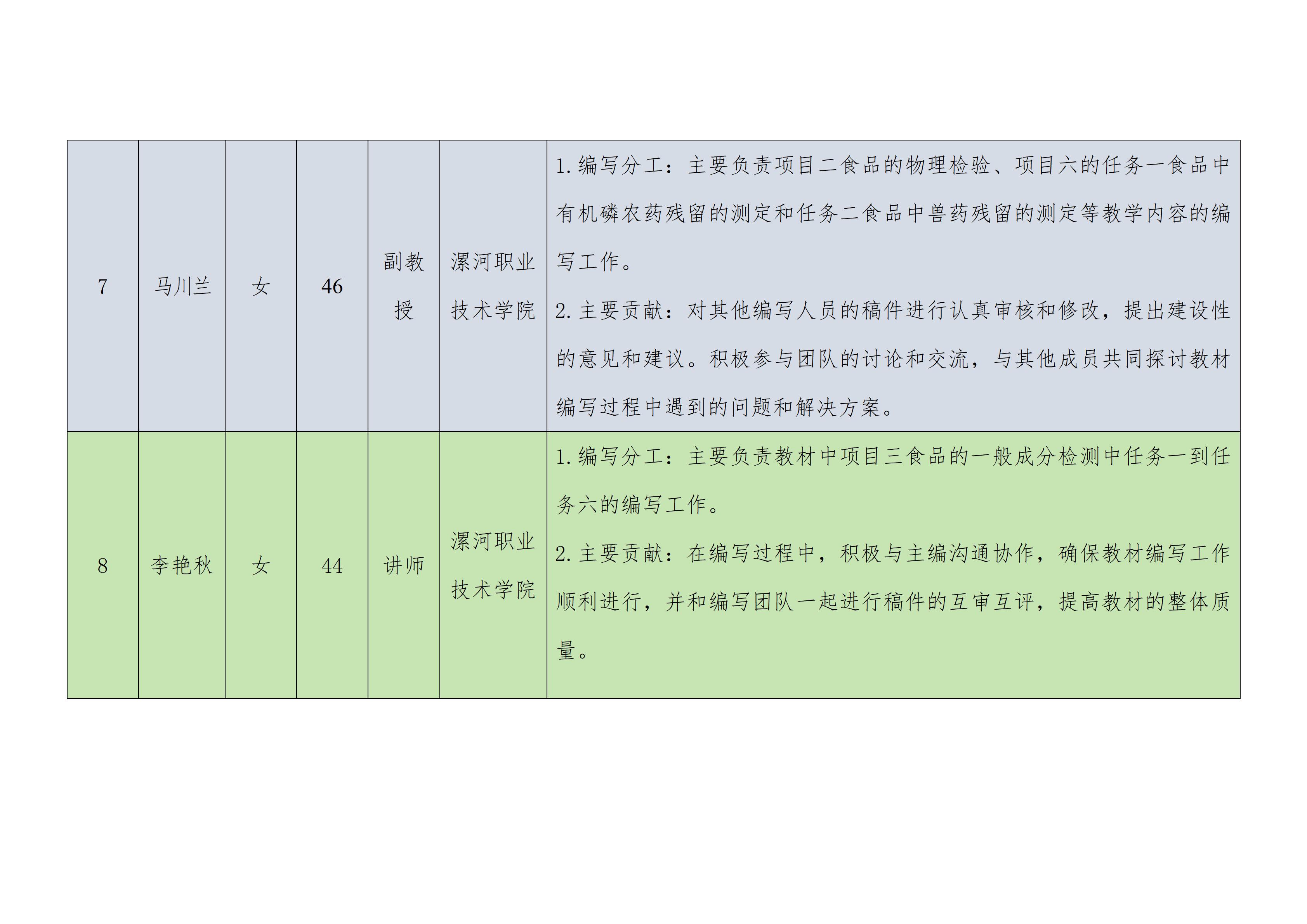 《食品理化检验检测技术》团队成员