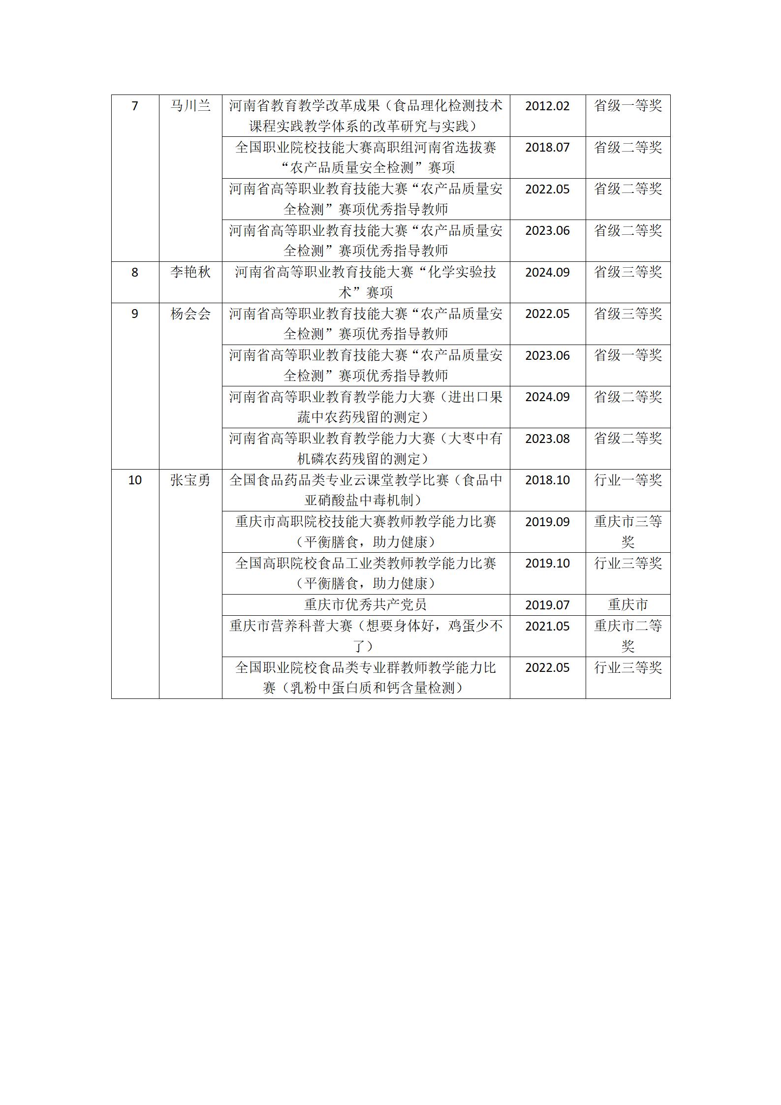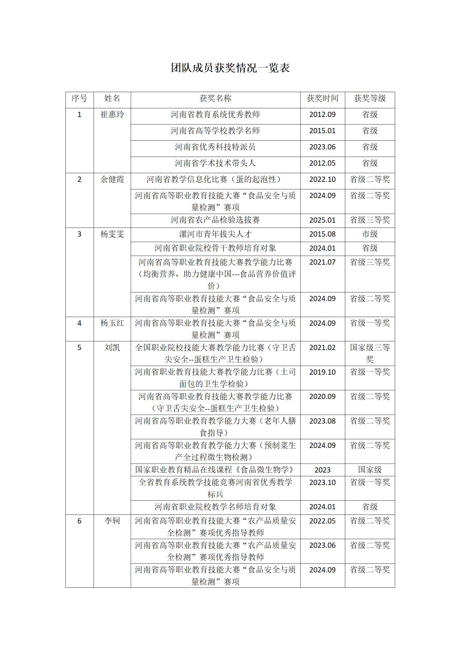 《食品理化检验检测技术》团队成员